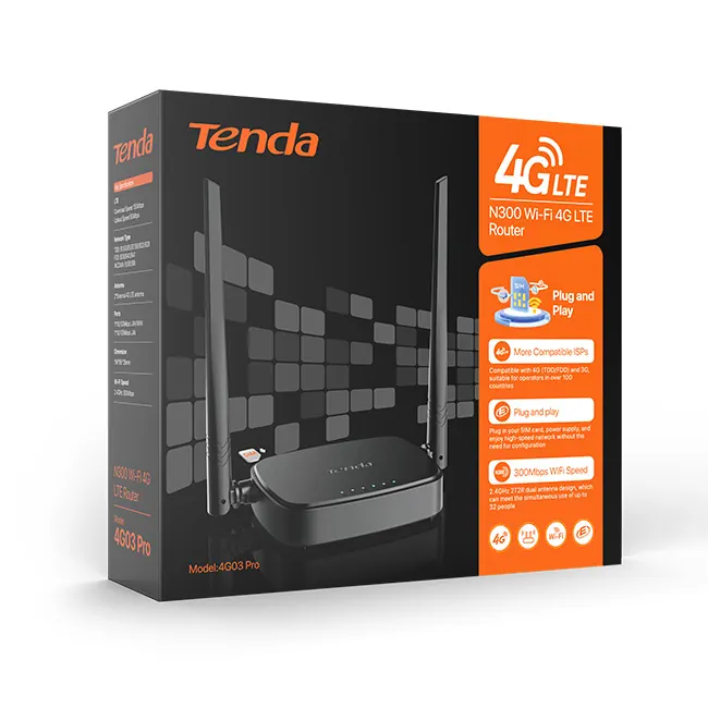 مودم رومیزی Tenda 4G03 Pro یک دستگاه 3G/4G کتگوری 4 می باشد و از تمامی سیمکارت های FDD اپراتورها پشتیبانی می کند